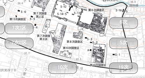 数次に渡る発掘調査の検出遺構を集成しました。 |
