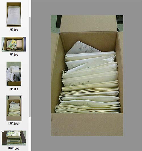 古文書の整理3:整理時の資料同定用写真撮影。 |